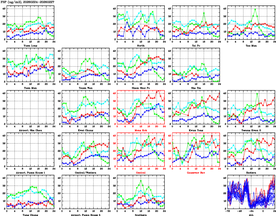 | Air Quality Data Time Series for FSP (2026/02/27) | ( Line colors: Day -3 Day -2 Day -1 Current day ) | 2D Map Current AQHI |