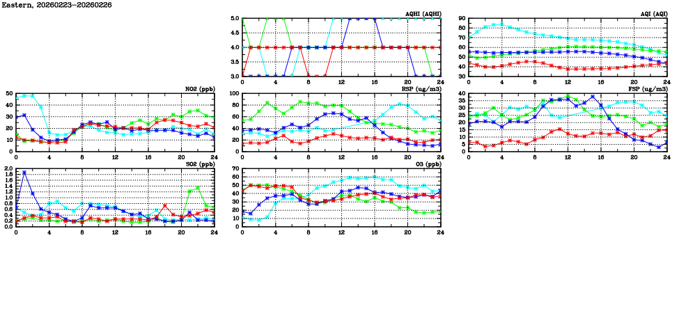 | Air Quality Data Time Series in Eastern (2026/02/26) | ( Line colors: Day -3 Day -2 Day -1 Current day ) | 2D Map Current AQHI |