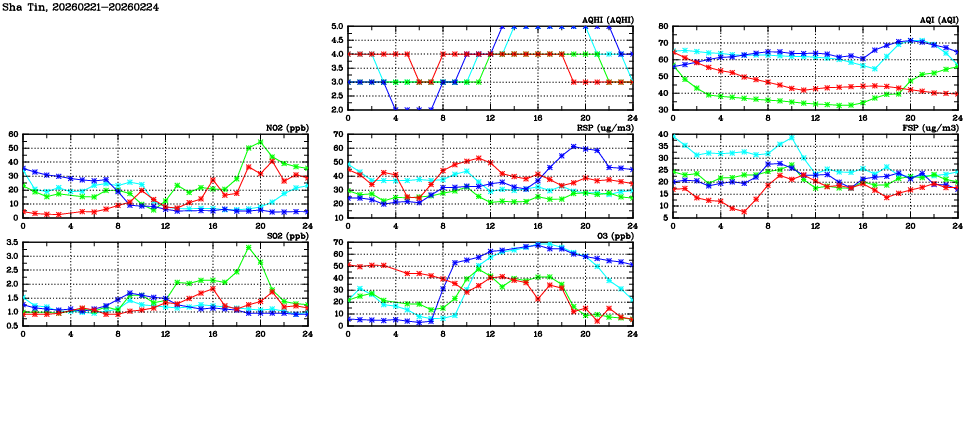 | Air Quality Data Time Series in Sha Tin (2026/02/24) | ( Line colors: Day -3 Day -2 Day -1 Current day ) | 2D Map Current AQHI |