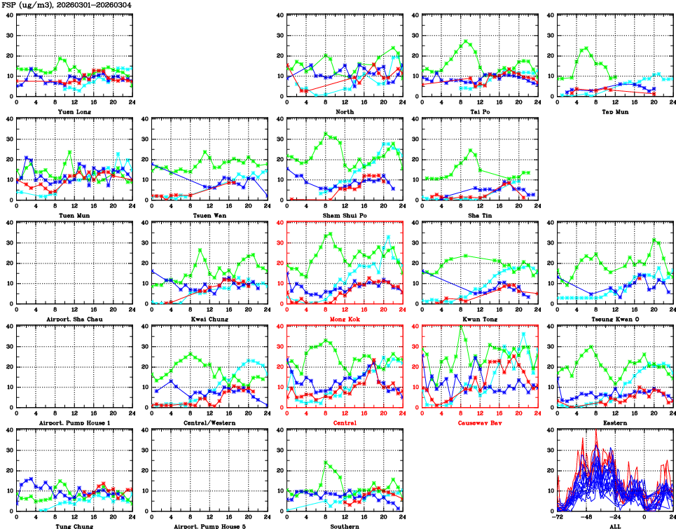 | Air Quality Data Time Series for FSP (2026/03/04) | ( Line colors: Day -3 Day -2 Day -1 Current day ) | 2D Map Current AQHI |