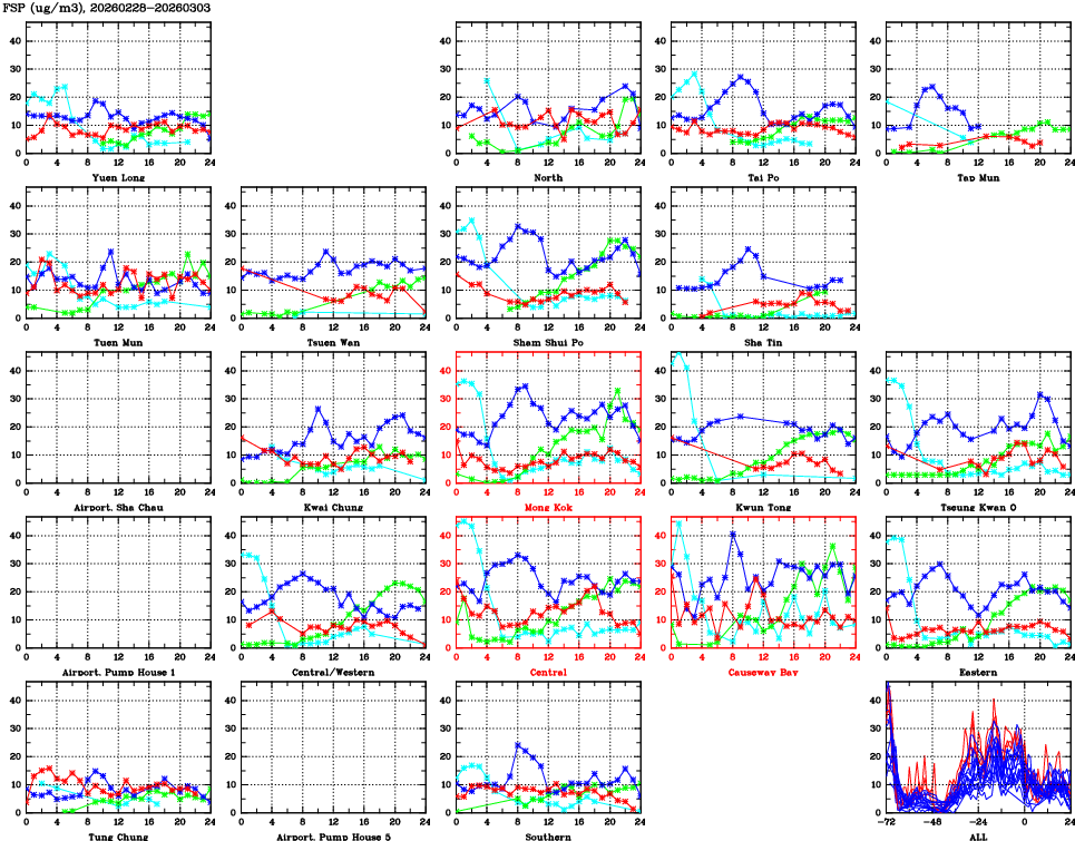 | Air Quality Data Time Series for FSP (2026/03/03) | ( Line colors: Day -3 Day -2 Day -1 Current day ) | 2D Map Current AQHI |