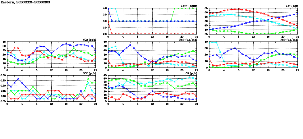| Air Quality Data Time Series in Eastern (2026/03/03) | ( Line colors: Day -3 Day -2 Day -1 Current day ) | 2D Map Current AQHI |