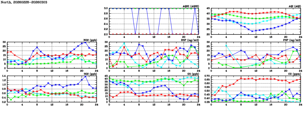 | Air Quality Data Time Series in North (2026/03/03) | ( Line colors: Day -3 Day -2 Day -1 Current day ) | 2D Map Current AQHI |