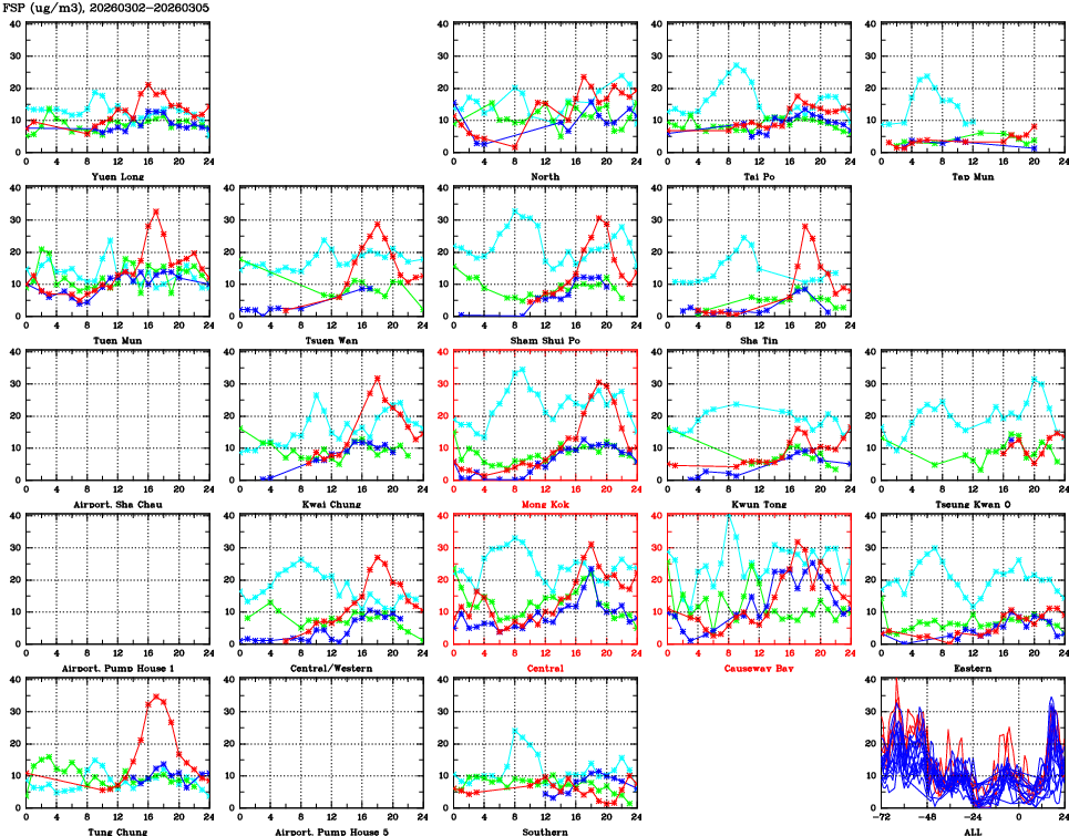 | Air Quality Data Time Series for FSP (2026/03/05) | ( Line colors: Day -3 Day -2 Day -1 Current day ) | 2D Map Current AQHI |