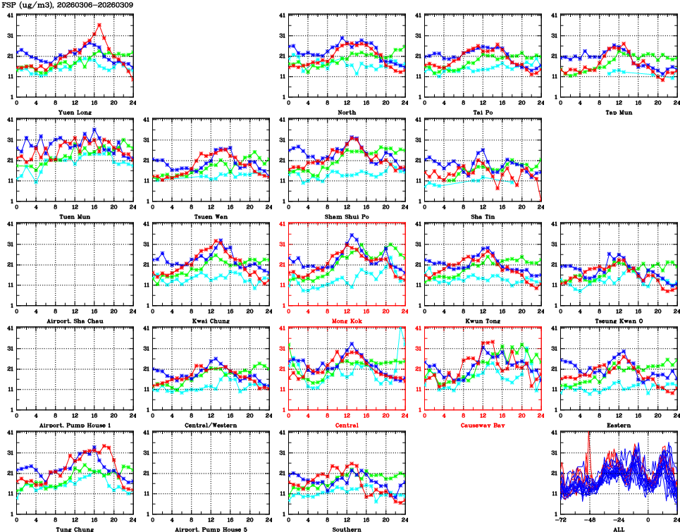 | Air Quality Data Time Series for FSP (2026/03/09) | ( Line colors: Day -3 Day -2 Day -1 Current day ) | 2D Map Current AQHI |