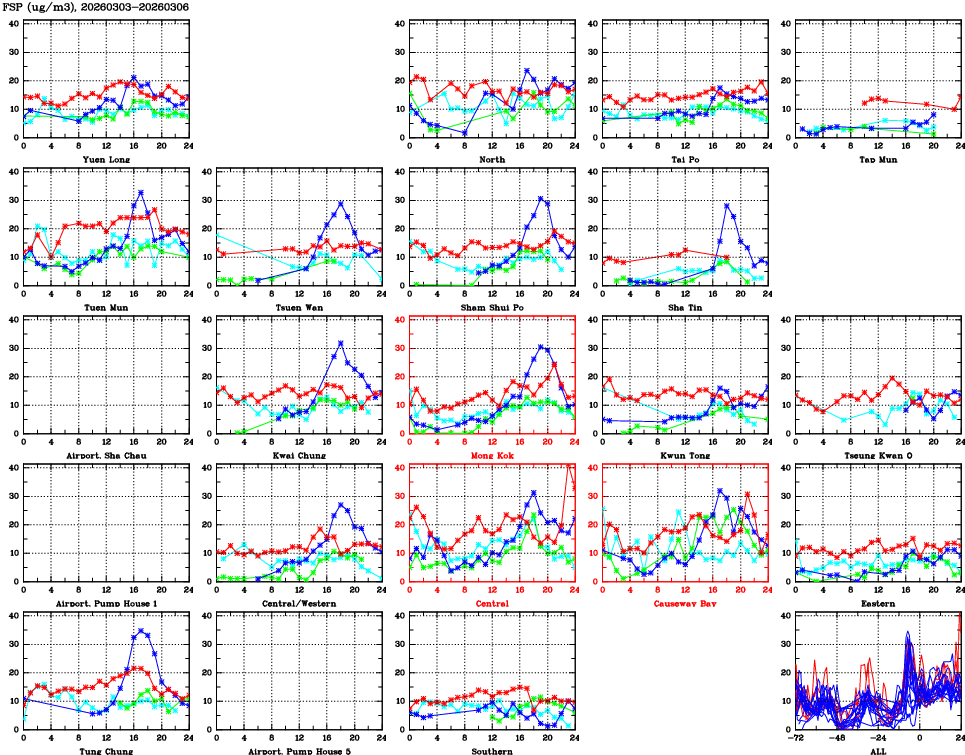 | Air Quality Data Time Series for FSP (2026/03/06) | ( Line colors: Day -3 Day -2 Day -1 Current day ) | 2D Map Current AQHI |