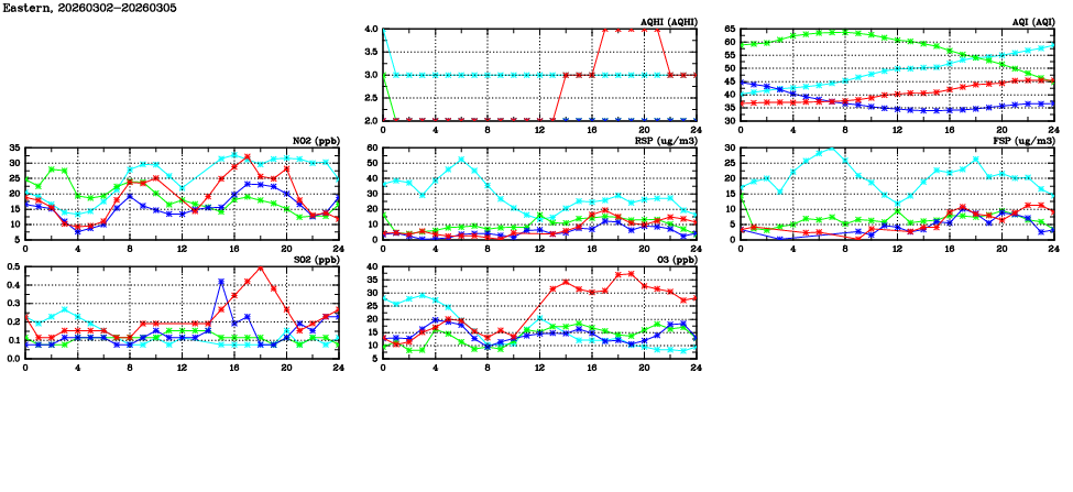 | Air Quality Data Time Series in Eastern (2026/03/05) | ( Line colors: Day -3 Day -2 Day -1 Current day ) | 2D Map Current AQHI |