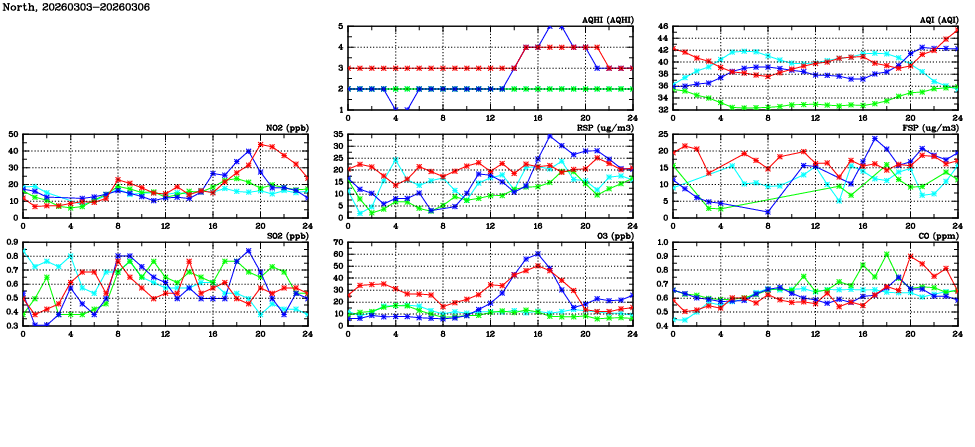 | Air Quality Data Time Series in North (2026/03/06) | ( Line colors: Day -3 Day -2 Day -1 Current day ) | 2D Map Current AQHI |