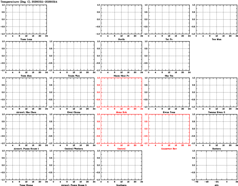 | Air Quality Data Time Series for Temp (2026/03/14) | ( Line colors: Day -3 Day -2 Day -1 Current day ) | 2D Map Current AQHI |