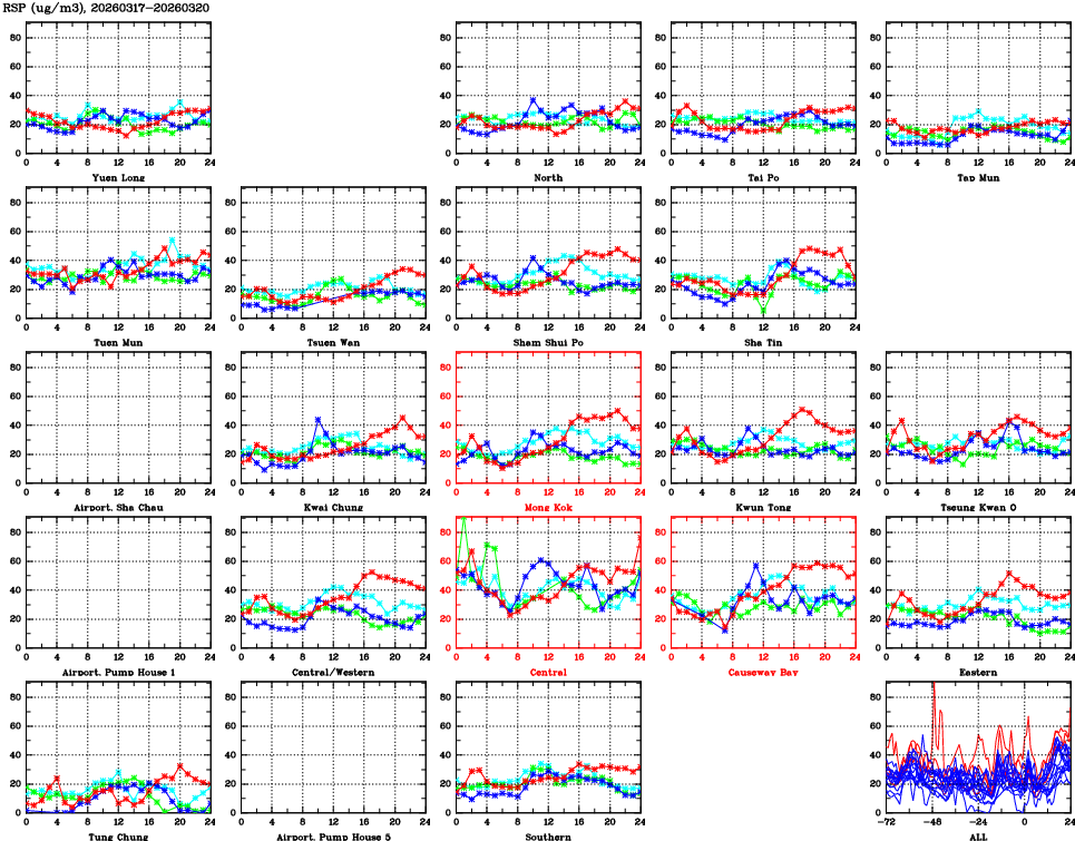 | Air Quality Data Time Series for RSP (2026/03/20) | ( Line colors: Day -3 Day -2 Day -1 Current day ) | 2D Map Current AQHI |