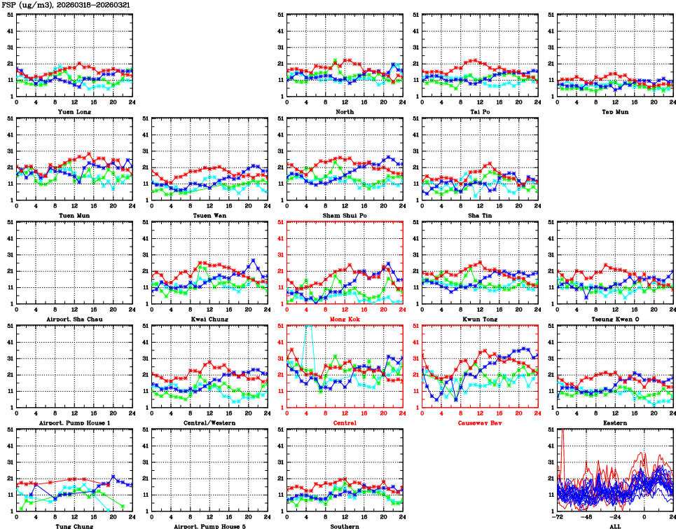 | Air Quality Data Time Series for FSP (2026/03/21) | ( Line colors: Day -3 Day -2 Day -1 Current day ) | 2D Map Current AQHI |