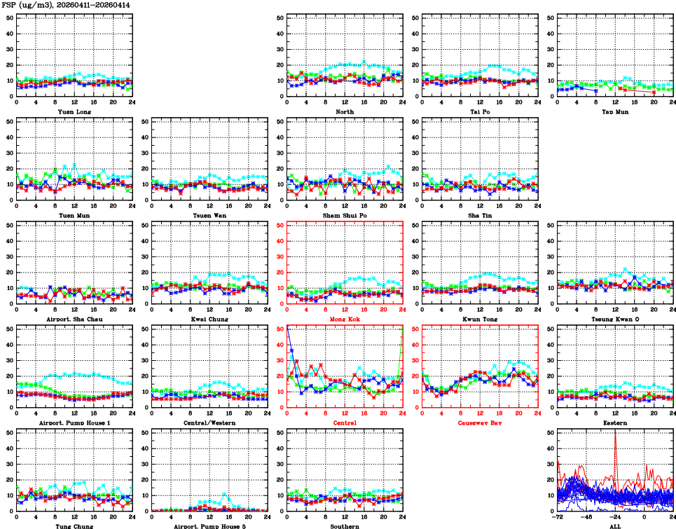 | Air Quality Data Time Series for FSP (2026/04/14) | ( Line colors: Day -3 Day -2 Day -1 Current day ) | 2D Map Current AQHI |