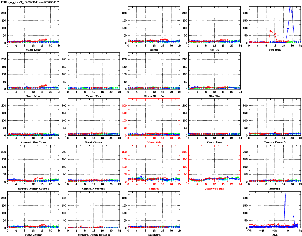 | Air Quality Data Time Series for FSP (2026/04/17) | ( Line colors: Day -3 Day -2 Day -1 Current day ) | 2D Map Current AQHI |