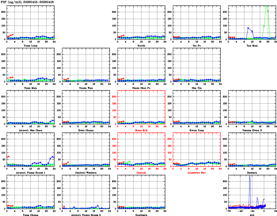 | Air Quality Data Time Series for FSP (2026/04/18) | ( Line colors: Day -3 Day -2 Day -1 Current day ) | 2D Map Current AQHI |