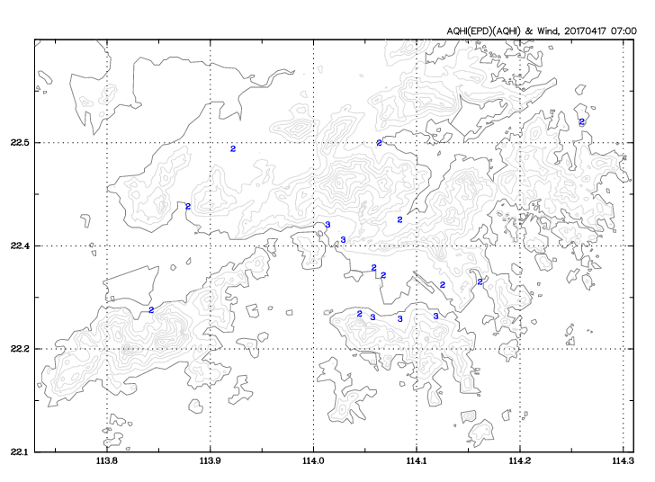 AQHI(EPD) & Wind Information at 07:00, 2017/04/17   Time Series   Current AQHI Values