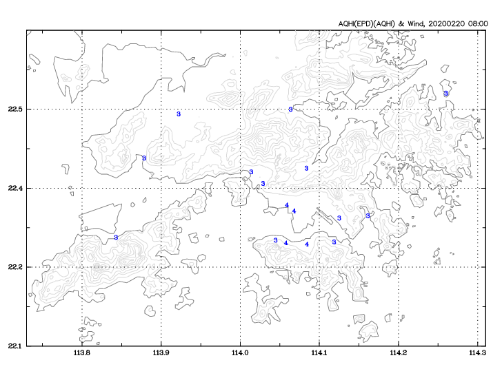 AQHI(EPD) & Wind Information at 08:00, 2020/02/20   Time Series   Current AQHI Values